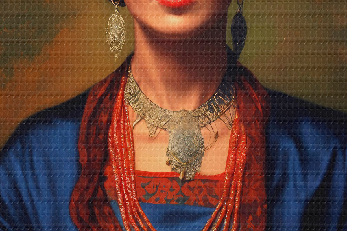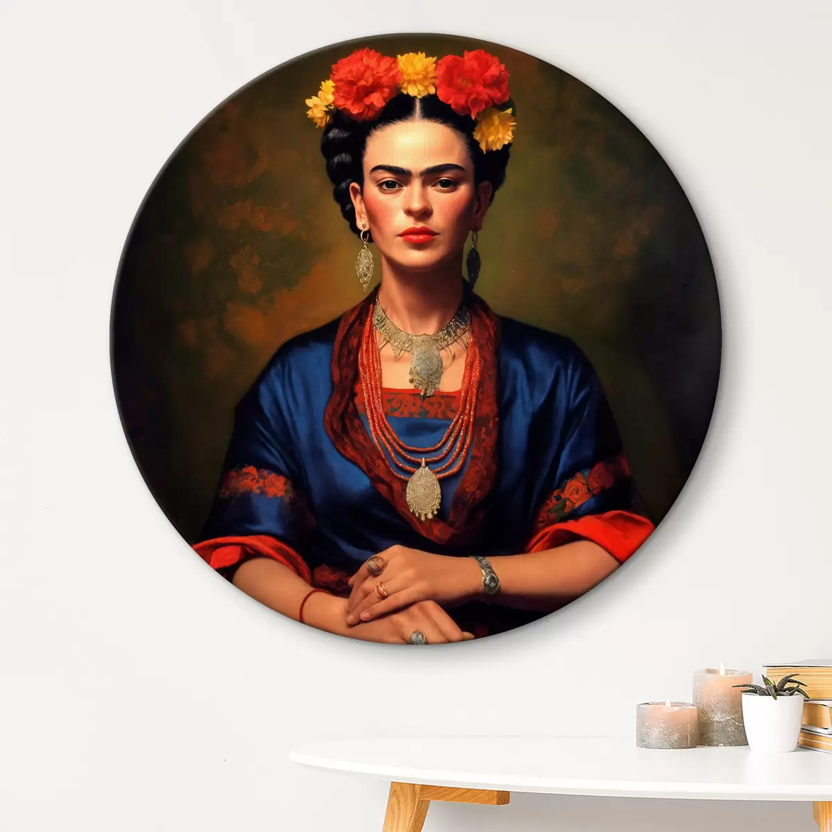Okrągły obraz Frida Kahlo w niebieskiej sukience Nr r32866