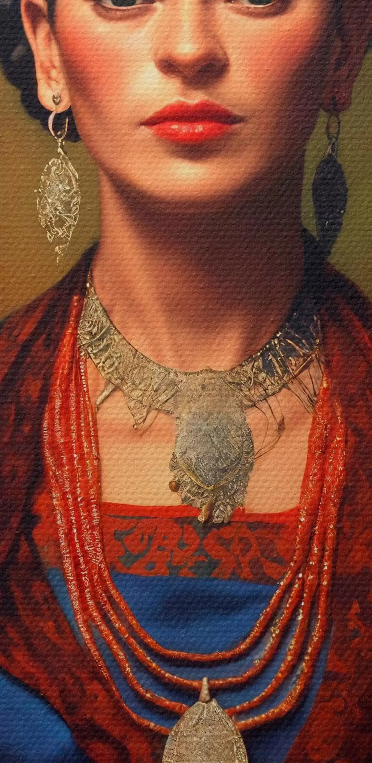 Okrągłe obrazy Frida Kahlo w niebieskiej sukience r32866