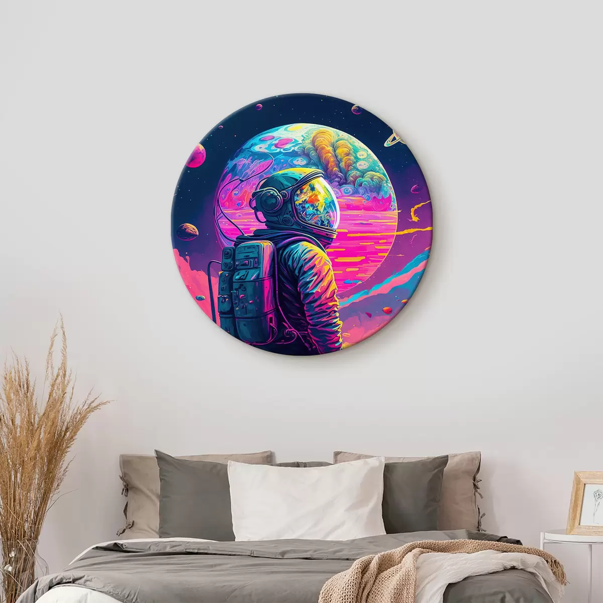 Okrągłe obrazy Ilustracja przyszłego krajobrazu z górami, planetami i księżycem r33058
