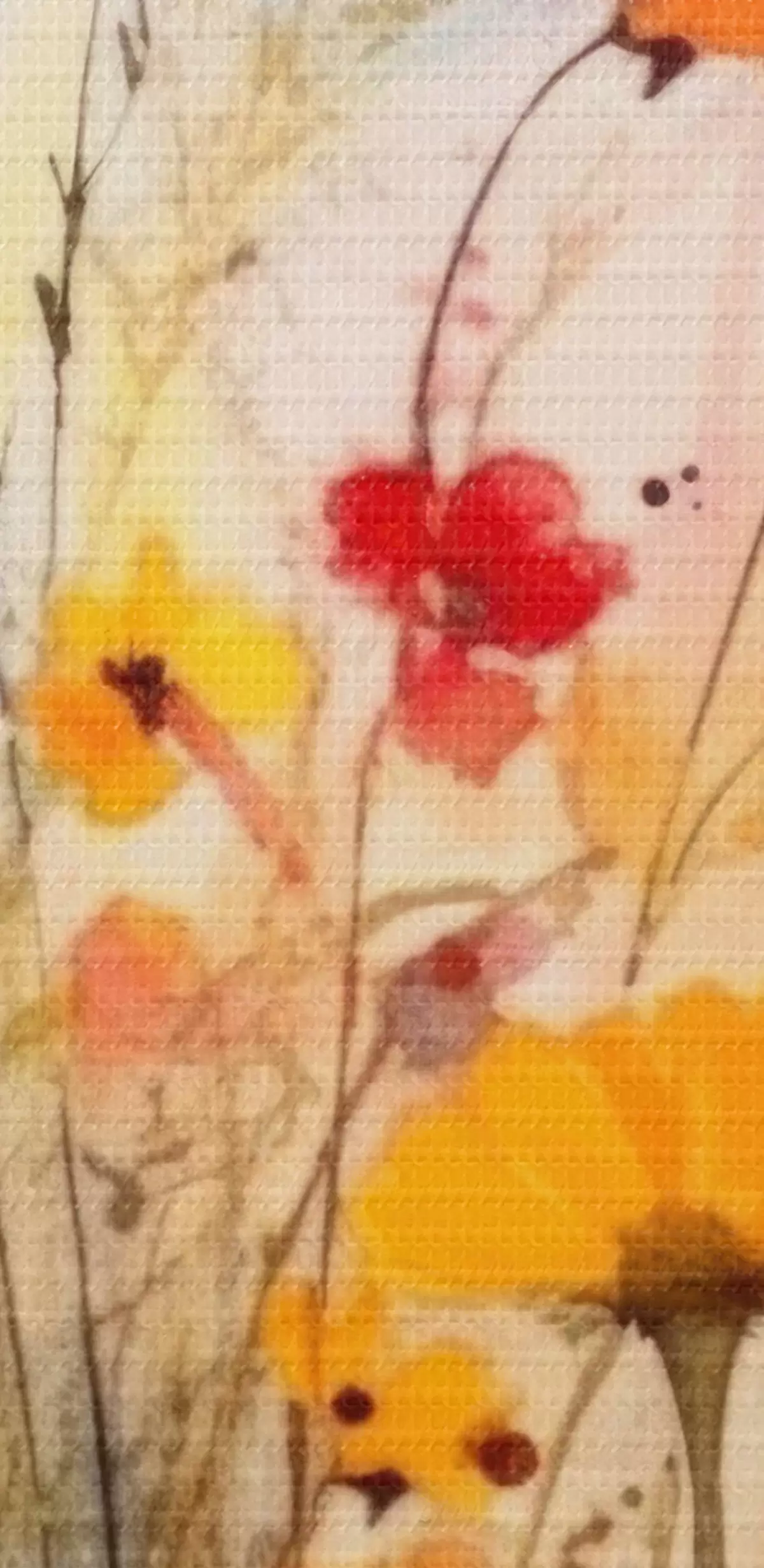 Drobny splot nici na tym płótnie przypomina powierzchnię profesjonalnych płócien artystycznych.