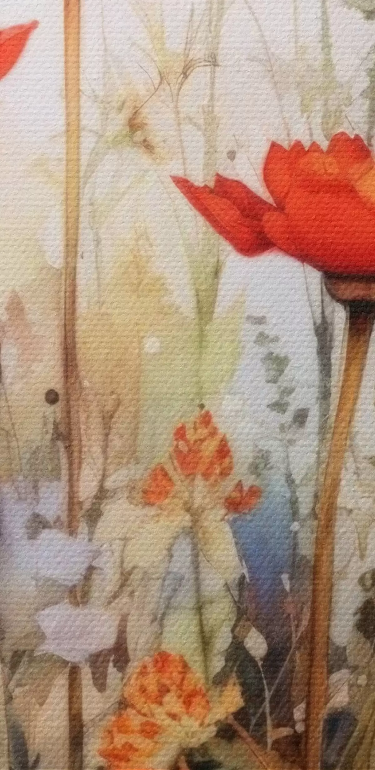 Do zamówienia dostępne są trzy rodzaje materiału: Economic Canvas - gęsty i trwały materiał do druku cyfrowego, identyczny z płótnem malarskim, wodoodporna powierzchnia, realistyczne odwzorowanie szczegółów, materiał średnioziarnisty. Premium Canvas - tekstura przypominająca płótno malarskie (przeplatane drobne nitki). Miękka, szczegółowa reprodukcja obrazu na matowej powierzchni. Eco-Premium - wysokiej jakości tkanina w 100% bawełniana. Dzięki naturalnym włóknom bawełnianym materiał jest trwały i odporny na zużycie. Doskonałe odwzorowanie kolorów i szczegółów.