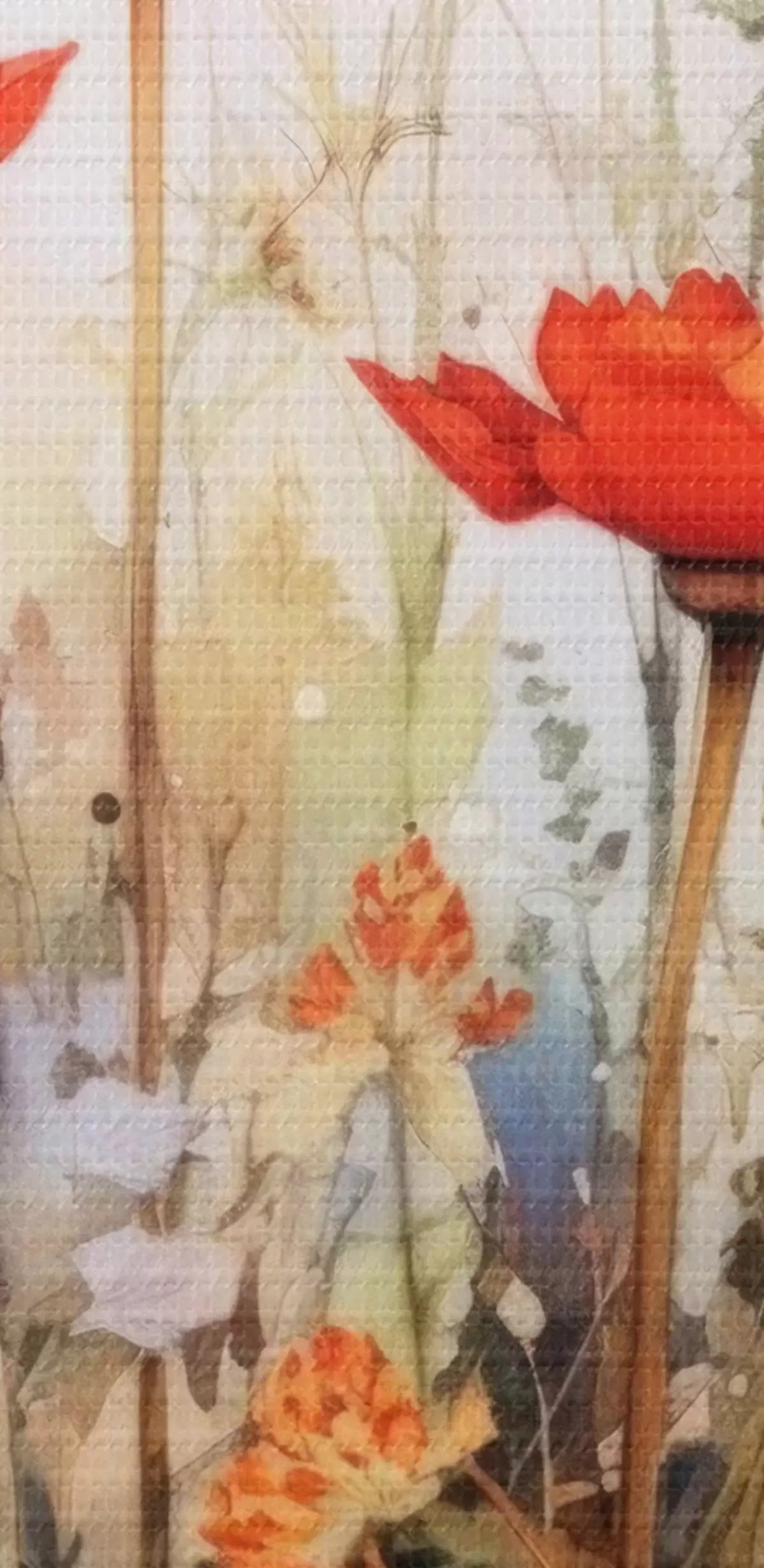 Drobny splot nici na tym płótnie przypomina powierzchnię profesjonalnych płócien artystycznych.