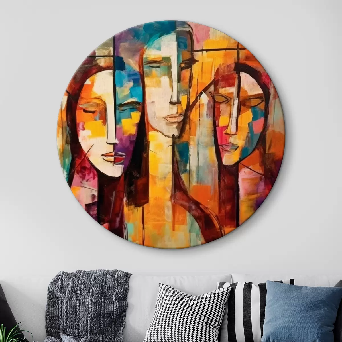 Okrągły obraz 3 surrealistyczne twarze w jaskrawych pomarańczowych odcieniach Nr r33845