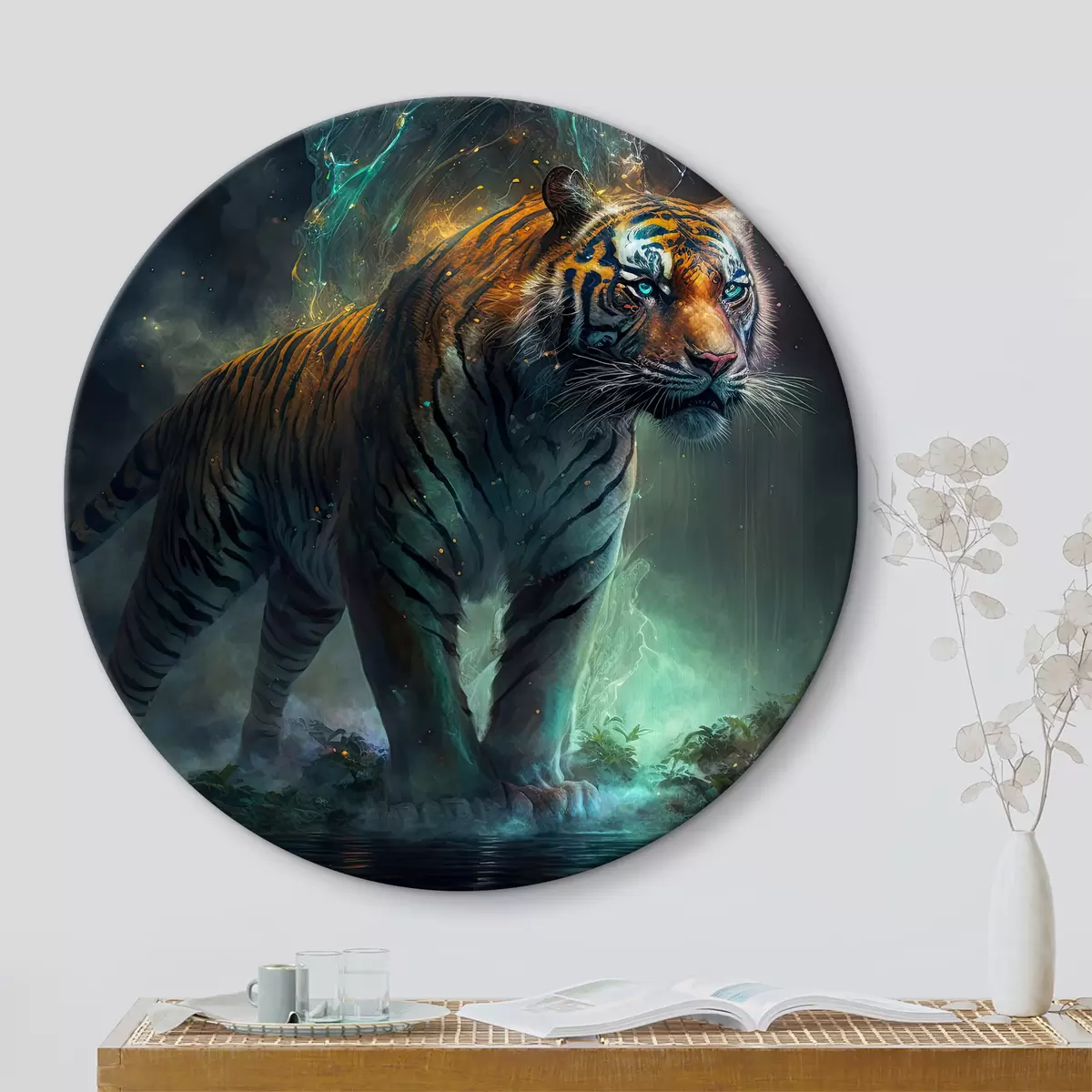 Okrągły obraz Ręcznie rysowany neonowy tygrys Nr r33919