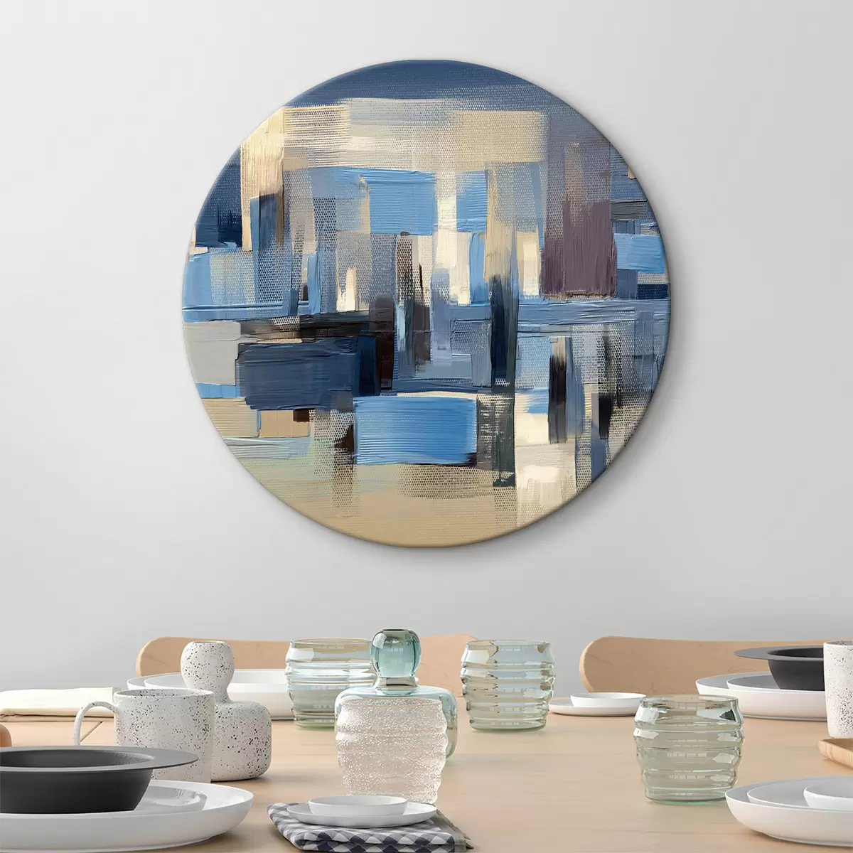 Okrągły obraz Woda, wieżowiec i farba Nr r34186