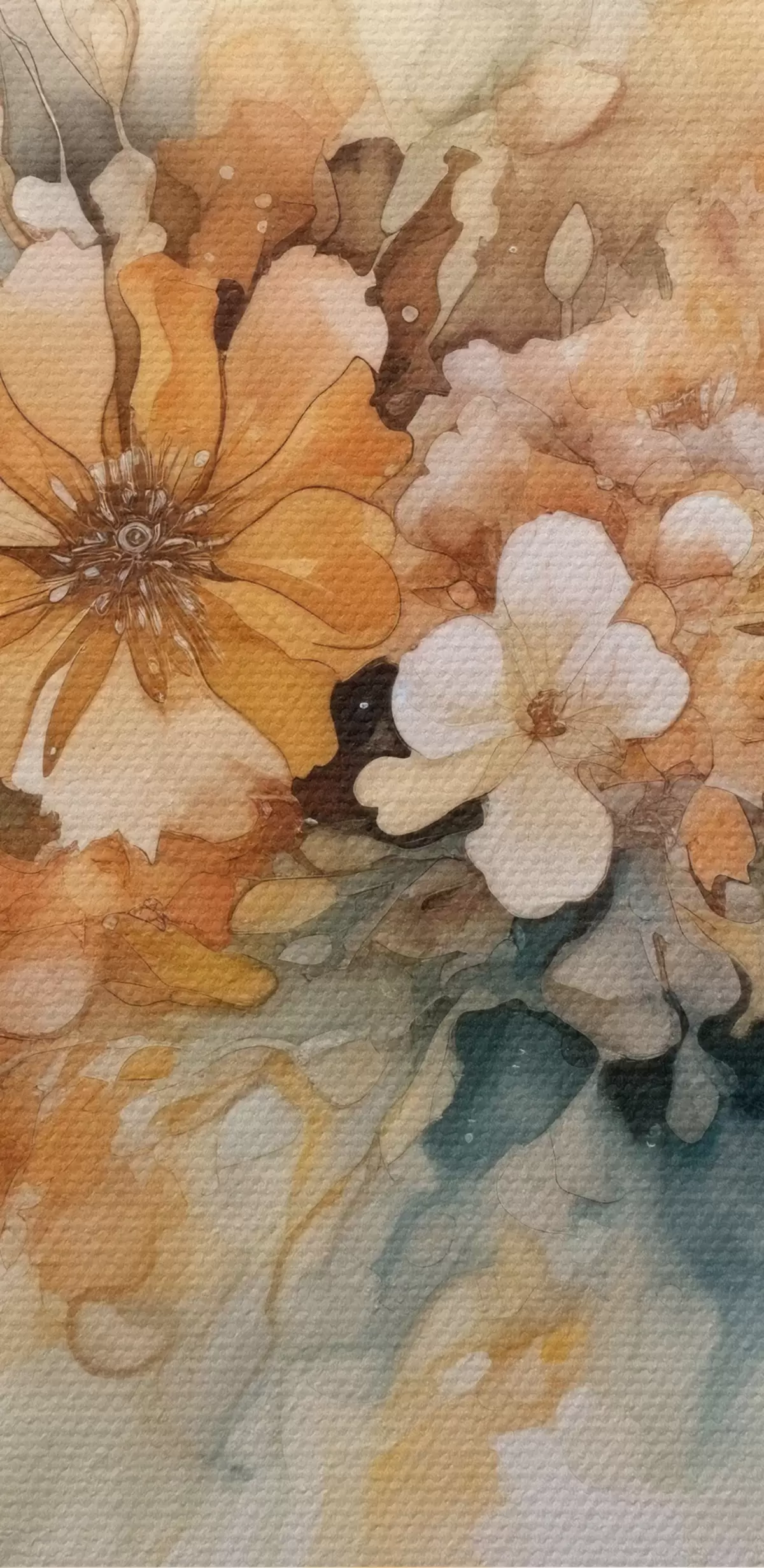 Okrągły obraz Pomarańczowe kwiaty akwarelowe Nr r34202