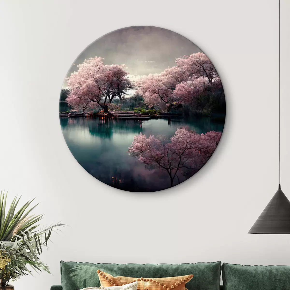 Okrągły obraz Woda, chmura i kwiat Nr r34388