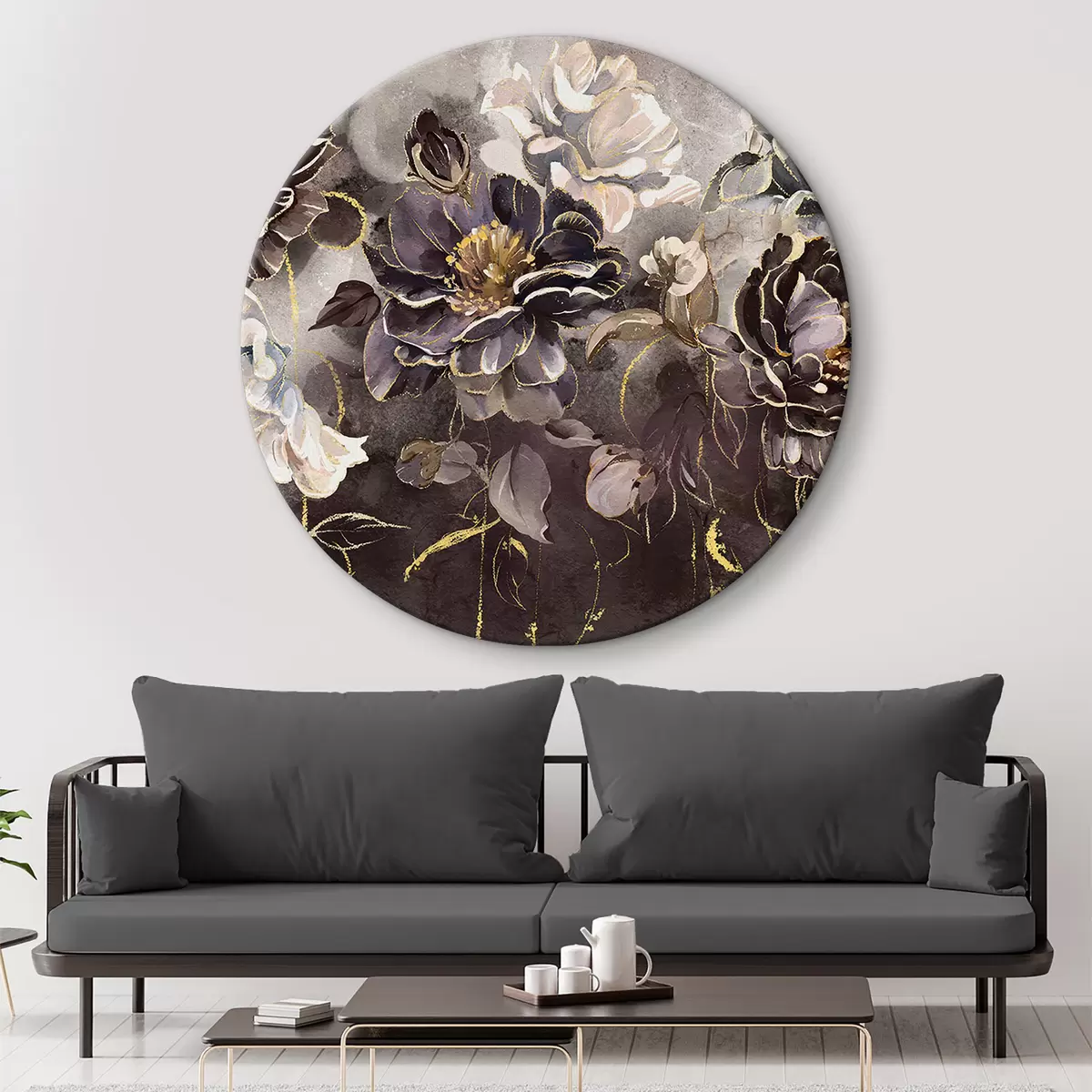 Okrągły obraz Obraz olejny z kwiatem róży, liśćmi Nr r34594