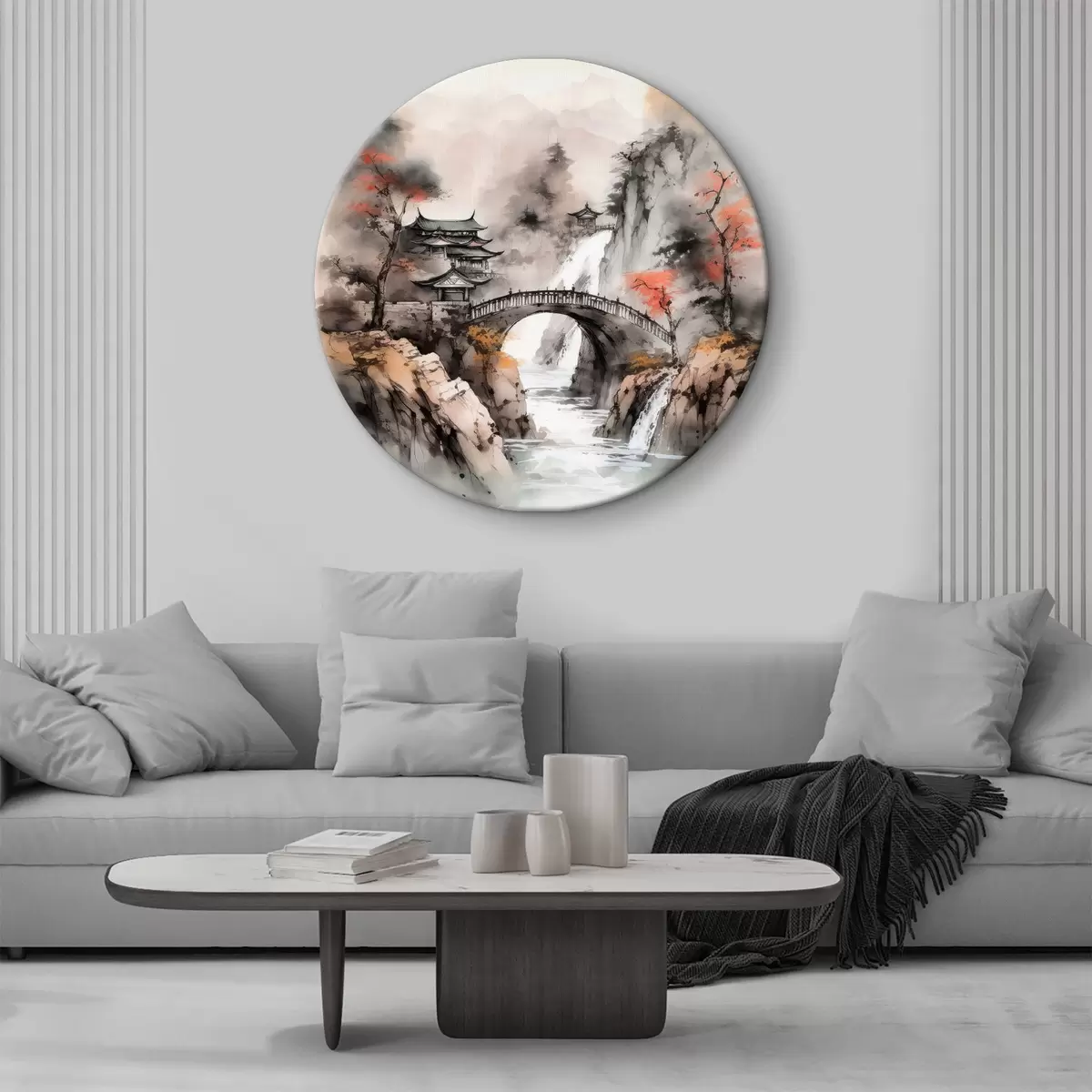 Okrągłe obrazy Chiński krajobraz z mostem r34627