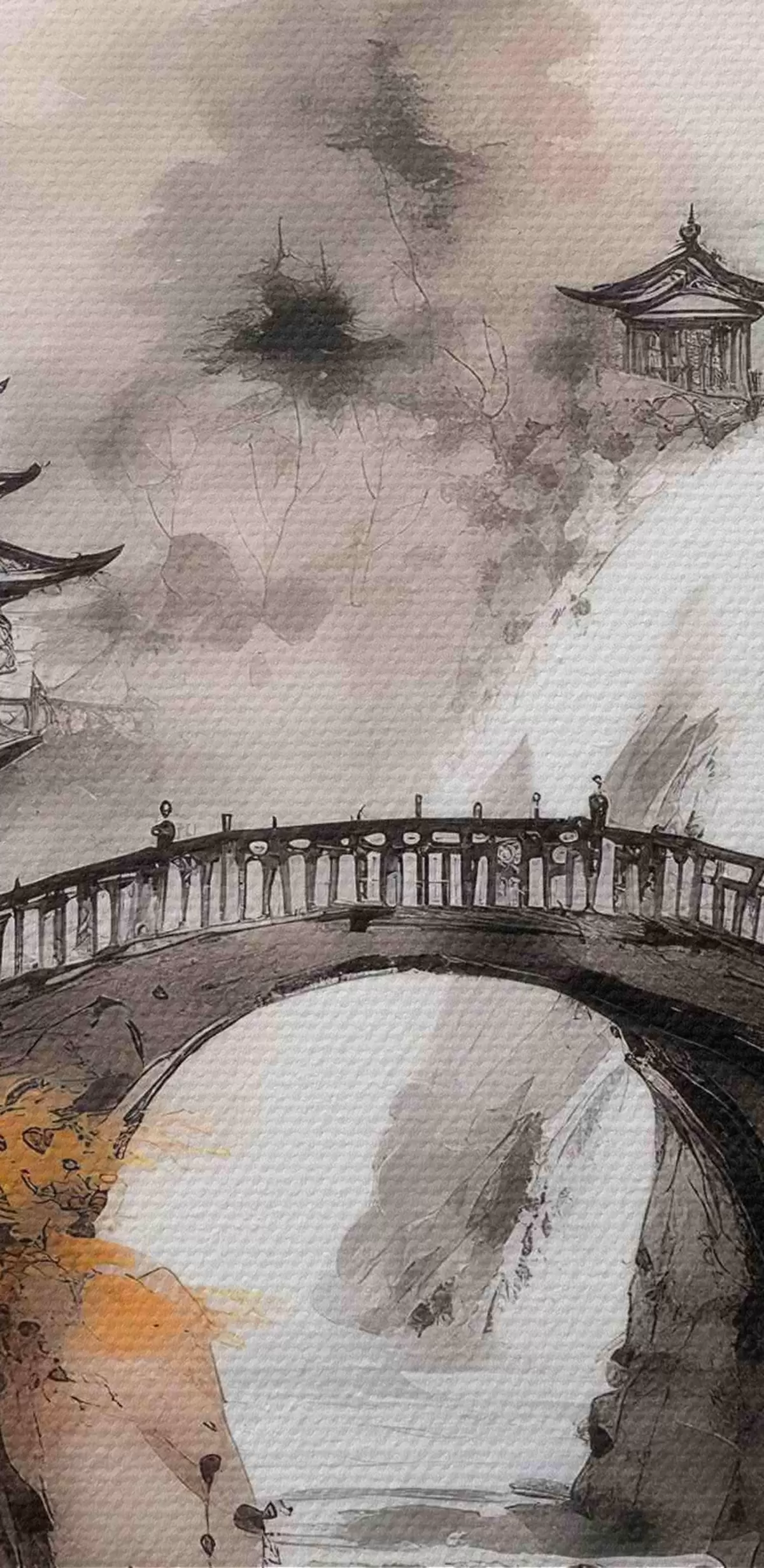 Okrągły obraz Chiński krajobraz z mostem Nr r34627