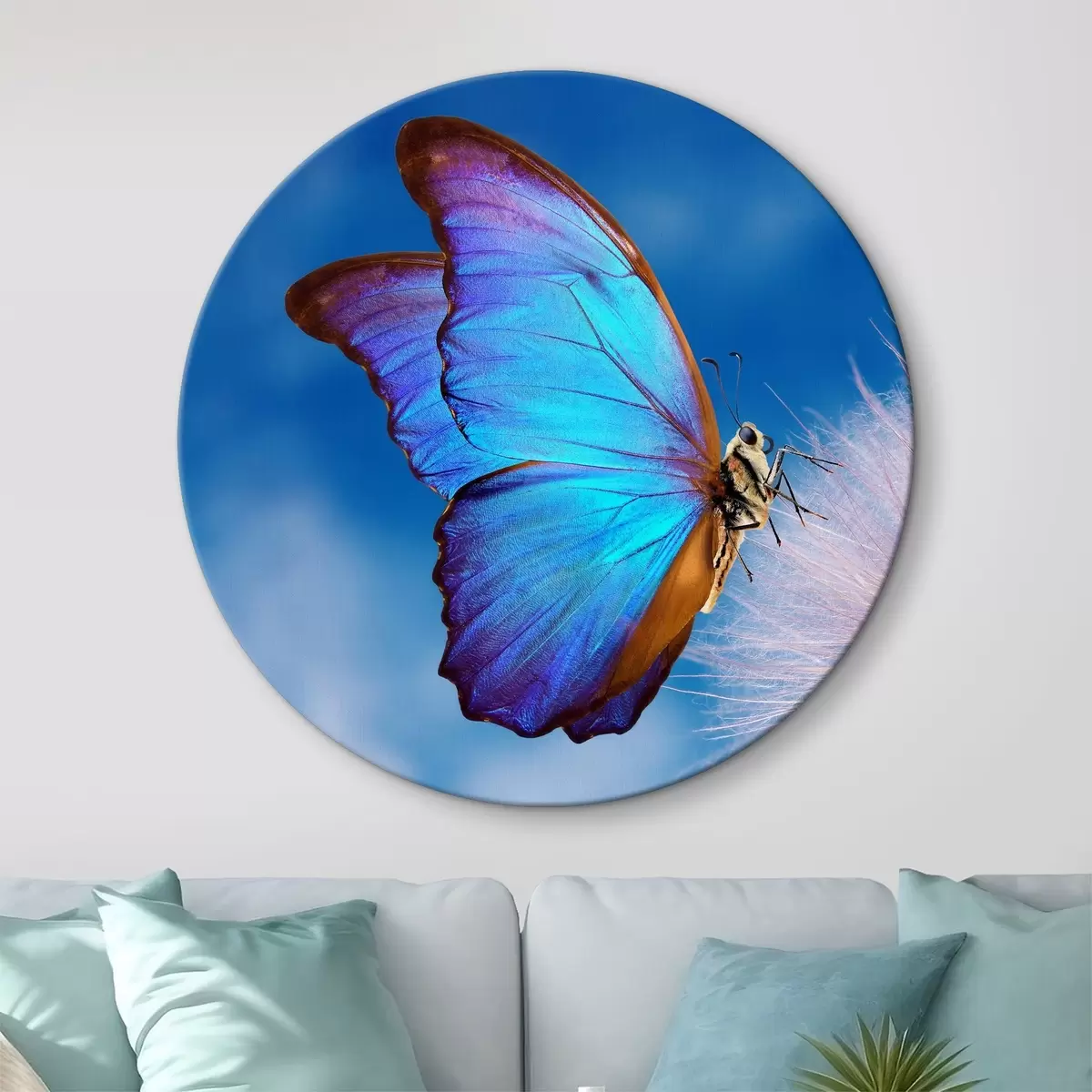 Okrągły obraz Motyl na mniszku lekarskim Nr r34923