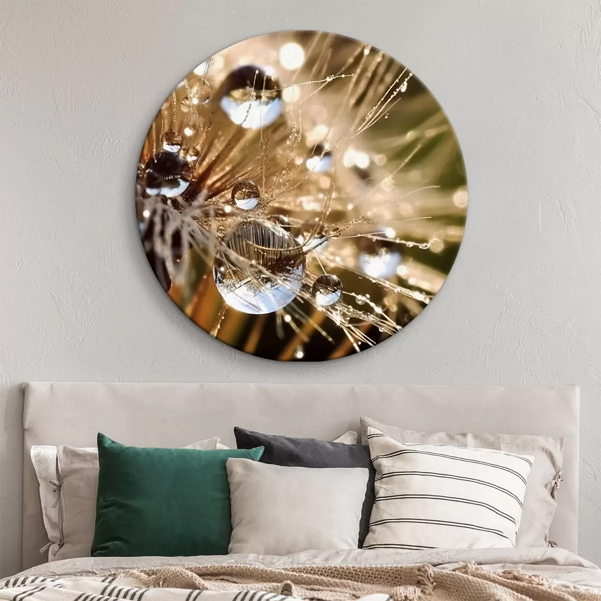 Okrągły obraz Krople rosy na mniszku lekarskim Nr r34925