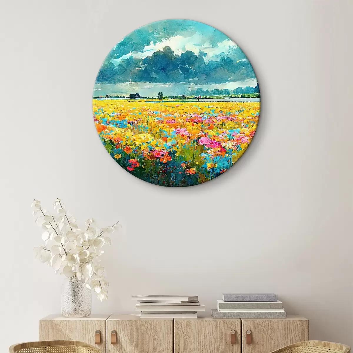 Okrągły obraz Dzikie kwiaty na tle gór Nr r34944