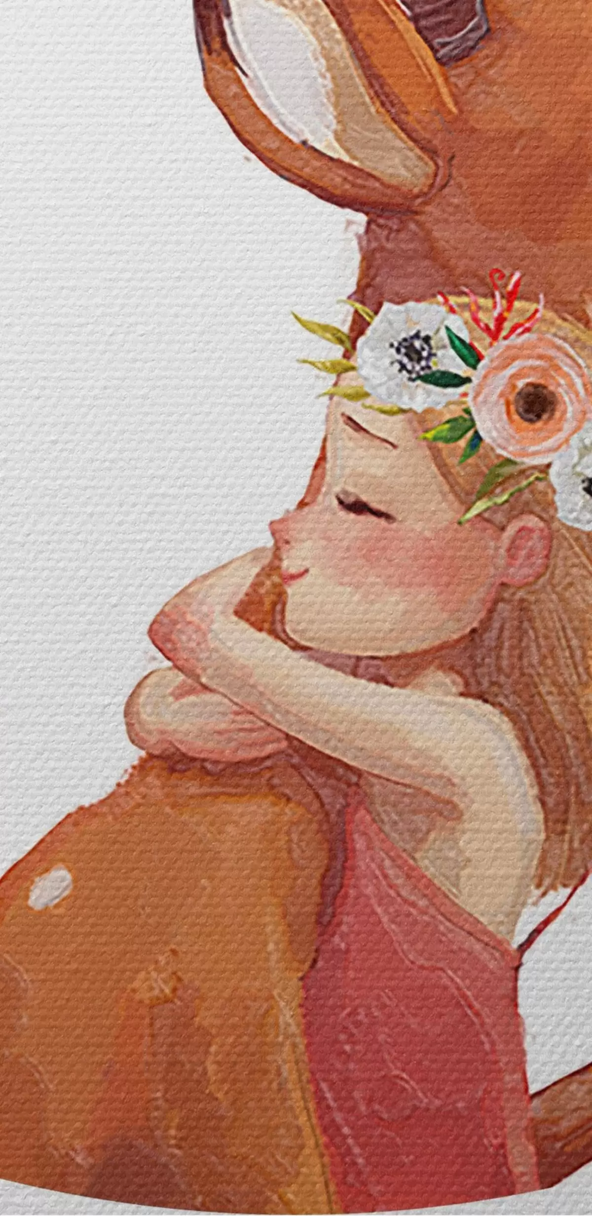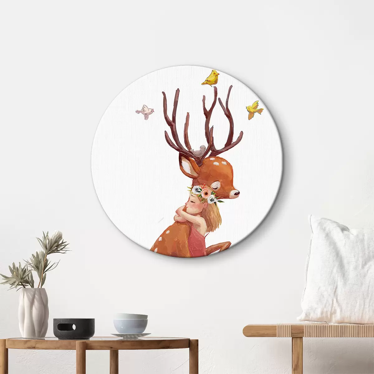 Okrągły obraz Jeleń wróżka i dziewczynka Nr r34998