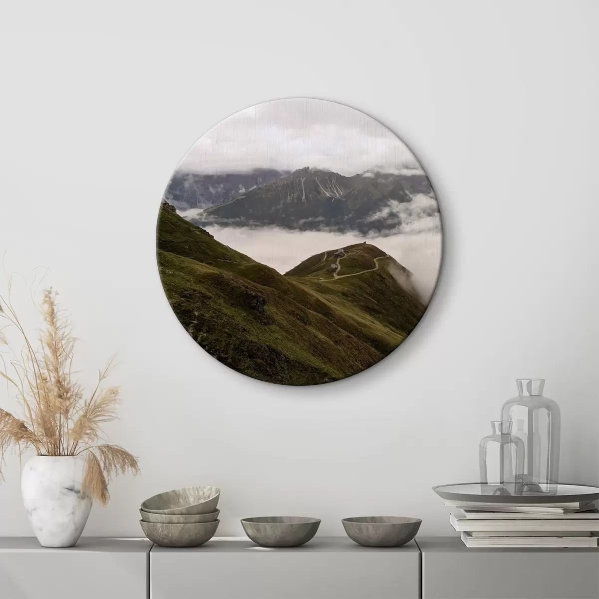 Okrągły obraz Fotografowanie pasma górskiego w ciągu dnia Nr r35326