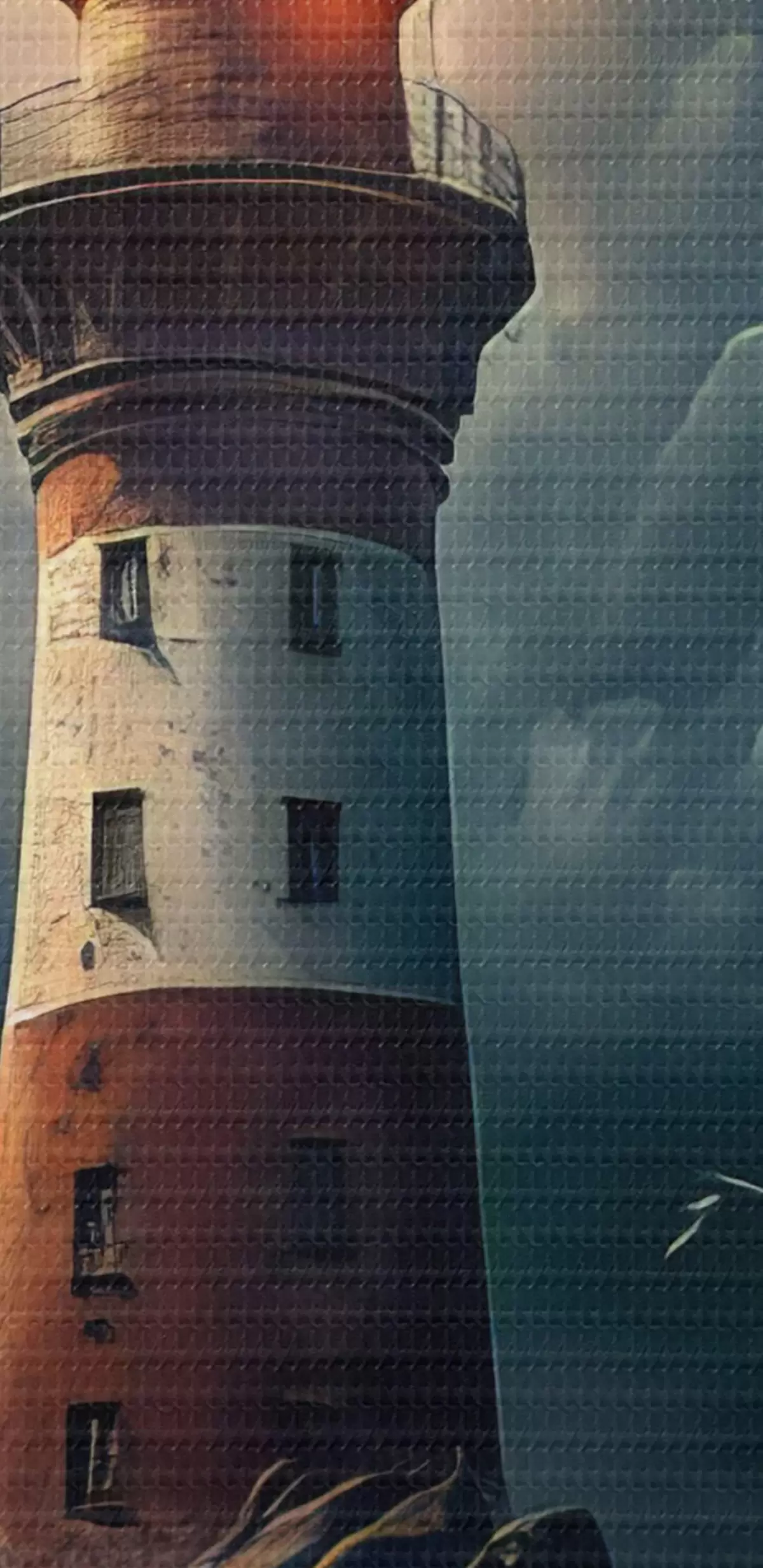 Okrągły obraz Malownicza latarnia morska na samotnej wyspie podczas sztormu Nr r35349