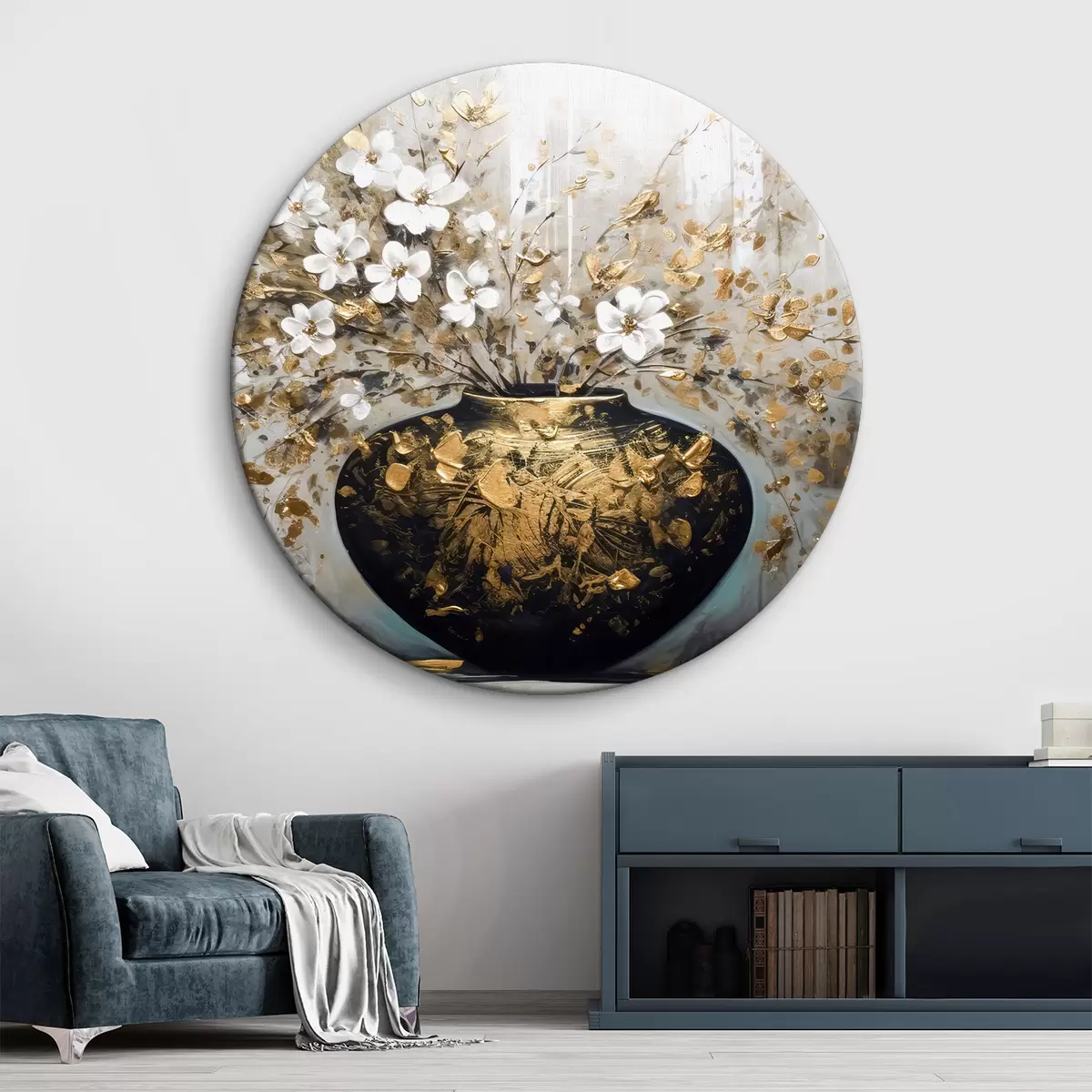 Okrągły obraz Duży wazon z małymi polnymi kwiatami Nr r35377