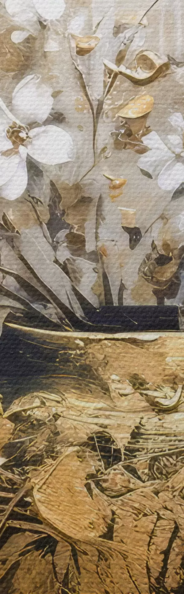 Obraz można delikatnie przetrzeć suchą, miękką szmatką lub gąbką; nie zaleca się używania mokrych produktów. Użycie wilgotnej gąbki jest dozwolone tylko wtedy, gdy obraz został polakierowany.