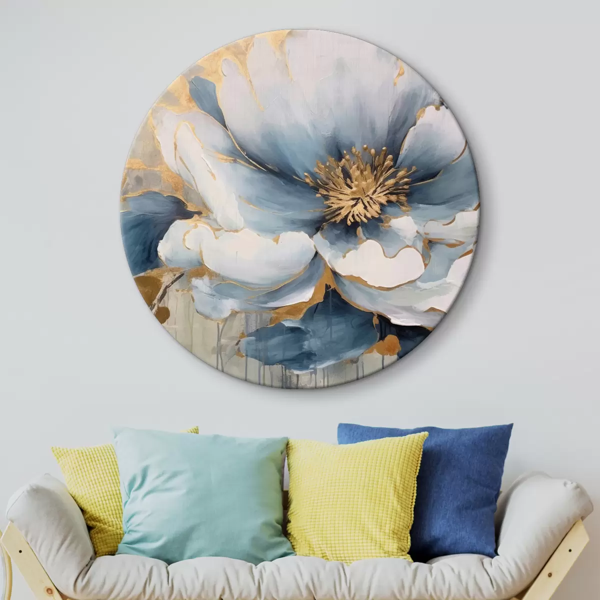 Okrągły obraz Duży, delikatny niebieski kwiat Nr r35382