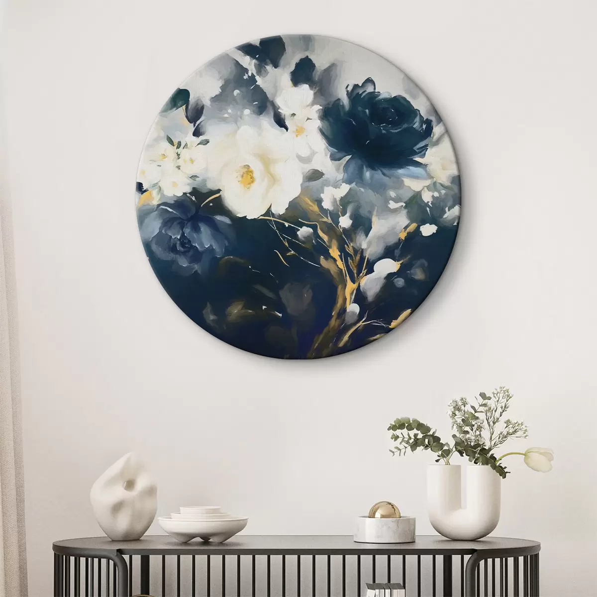 Okrągły obraz Akwarela niebieskie kwiaty Nr r35491