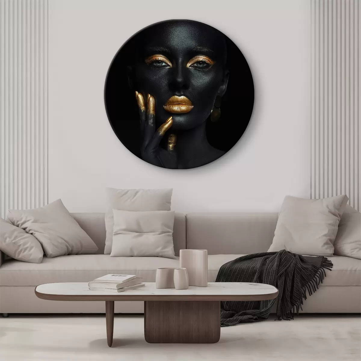 Okrągły obraz Stylowa dziewczęca abstrakcja ze złotem Nr r35624