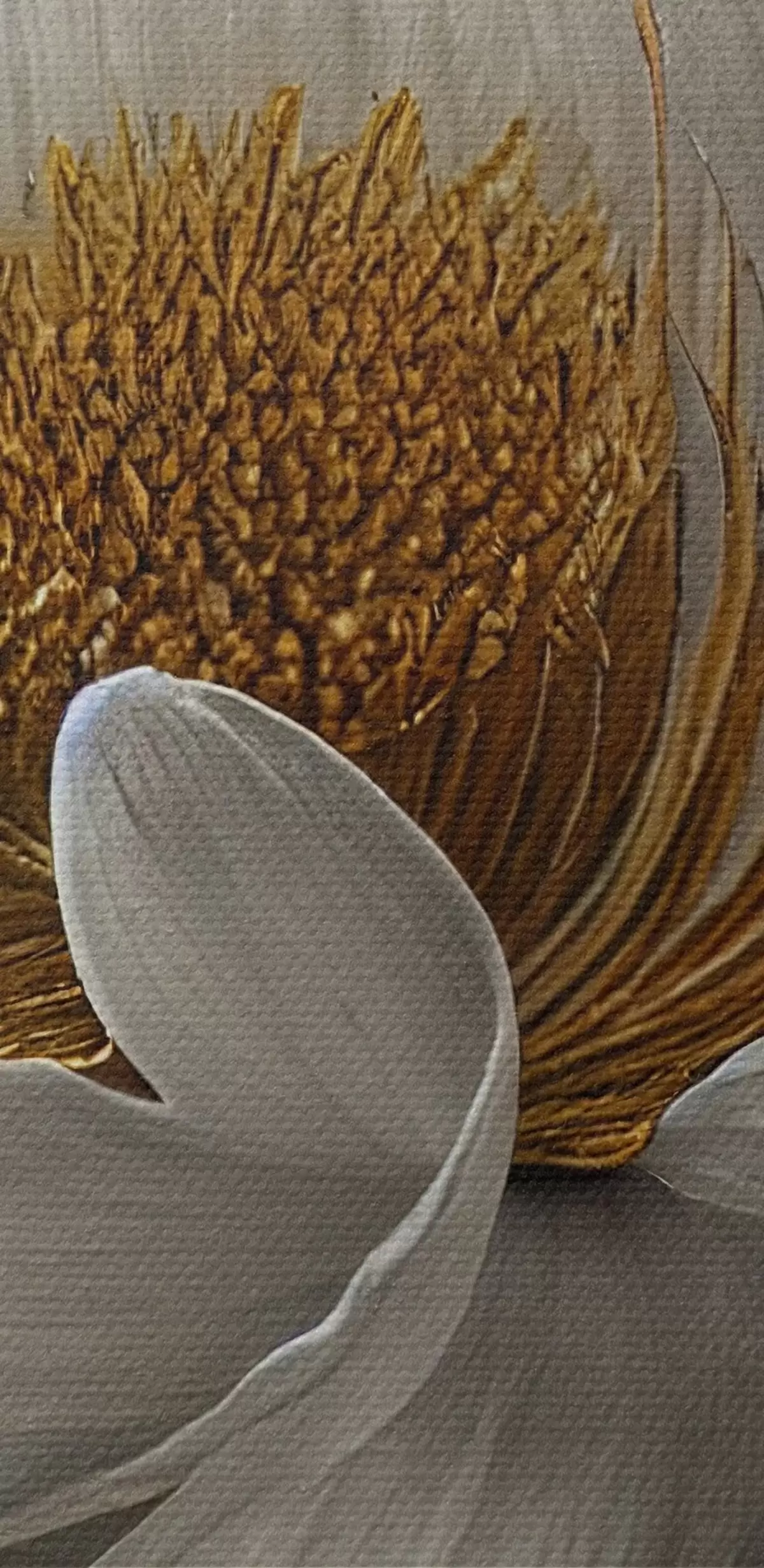 Drobny splot nici na tym płótnie przypomina powierzchnię profesjonalnych płócien artystycznych.