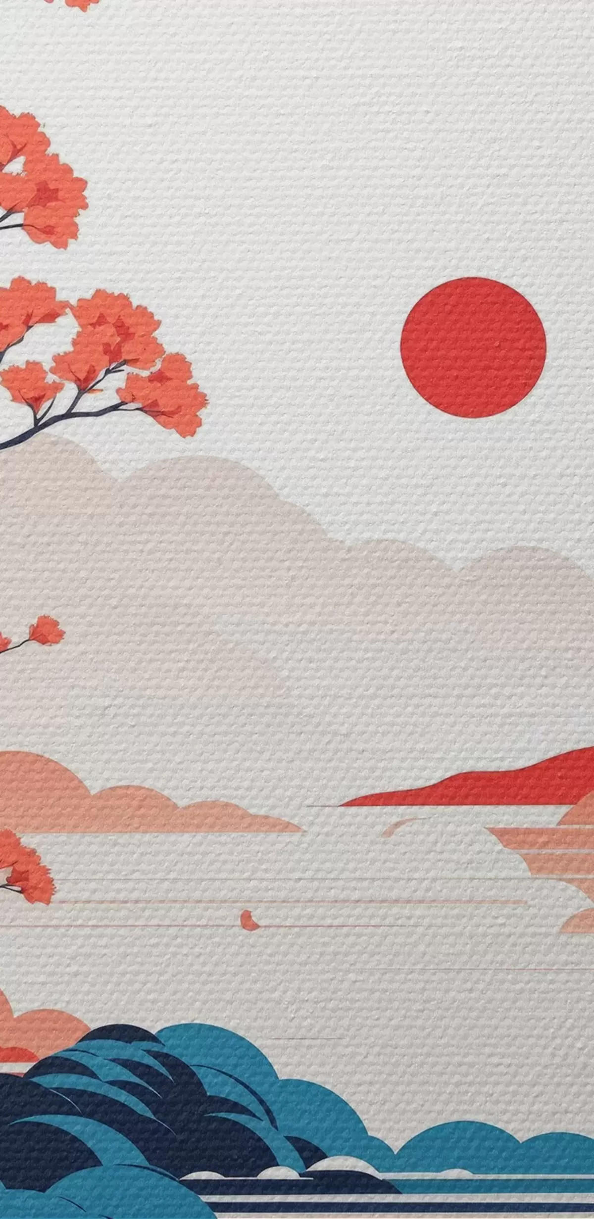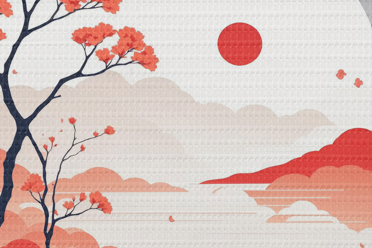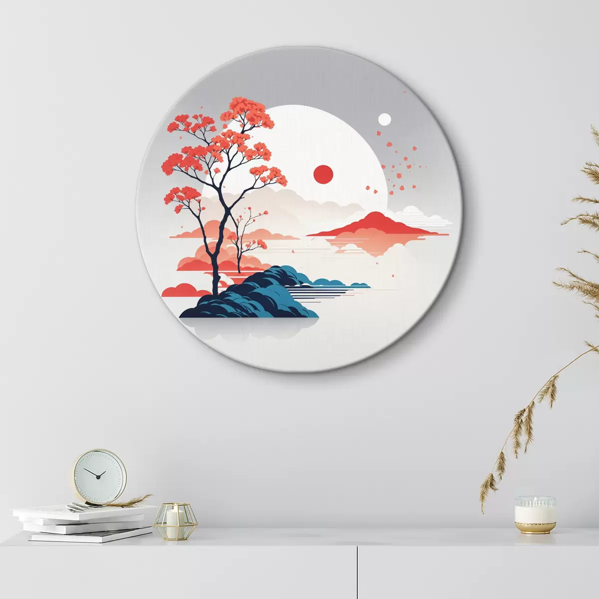 Okrągły obraz Kwiaty wiśni na tle wschodu słońca Nr r35820
