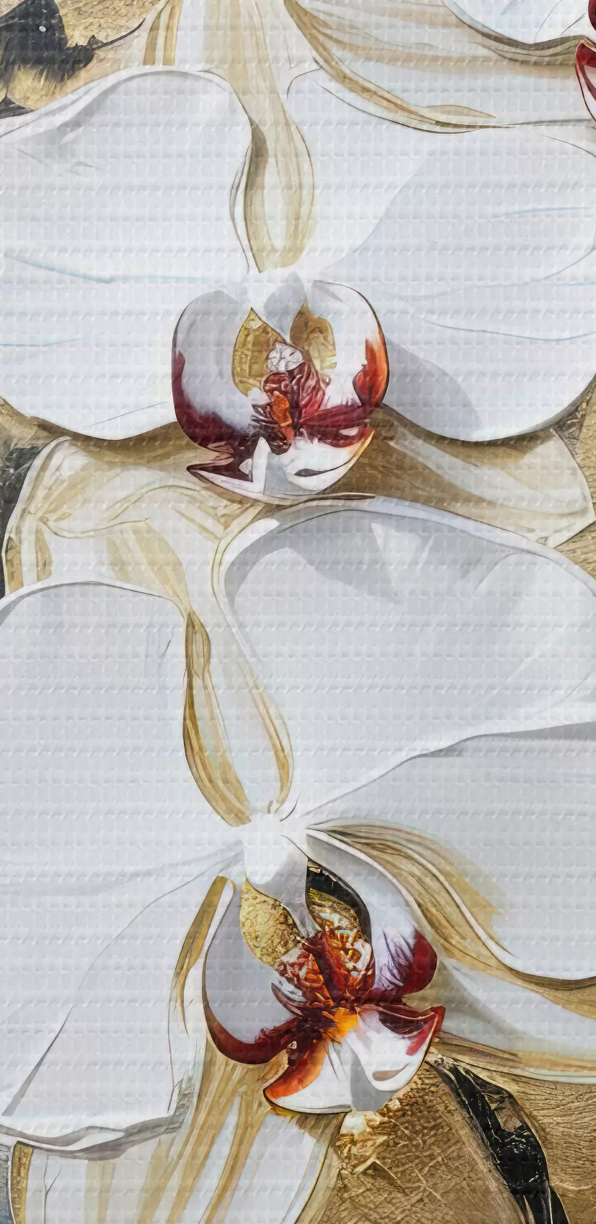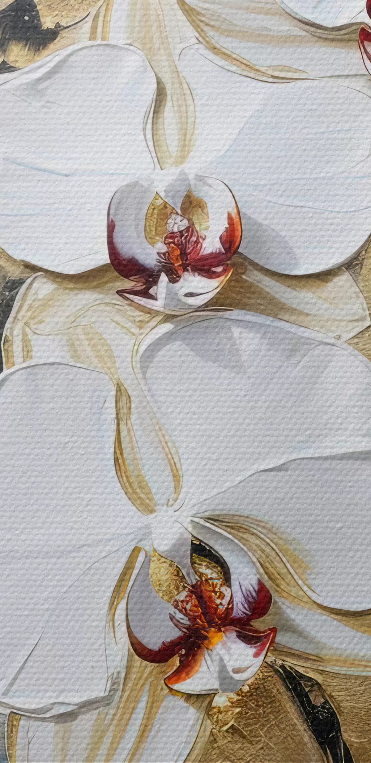 Okrągły obraz Orchid Symphony z abstrakcyjnymi pociągnięciami pędzla Nr r35904