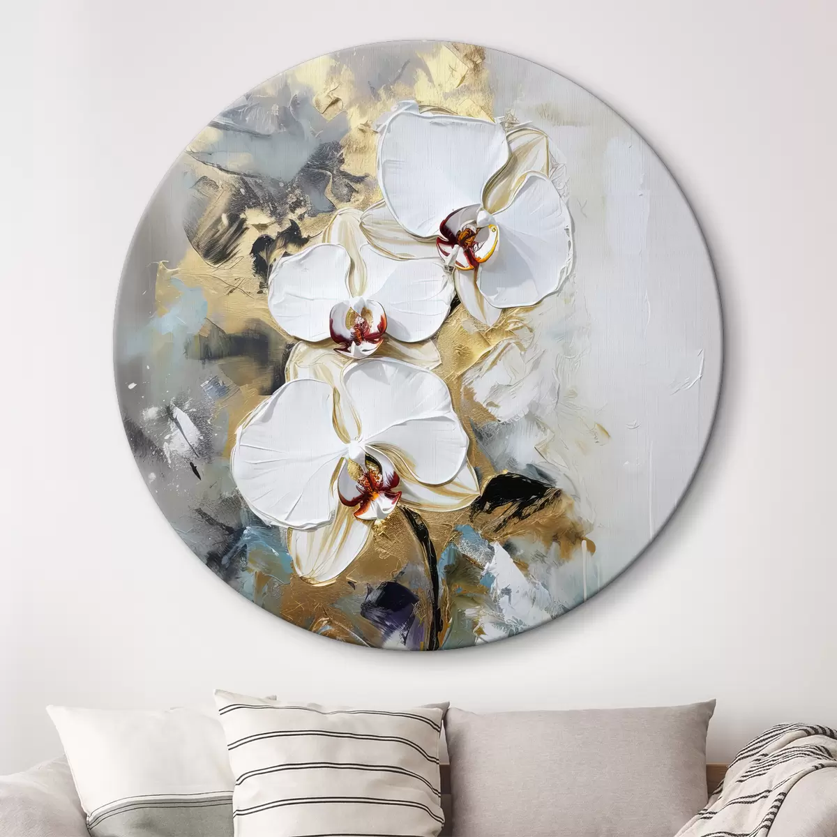 Okrągłe obrazy Orchid Symphony z abstrakcyjnymi pociągnięciami pędzla r35904