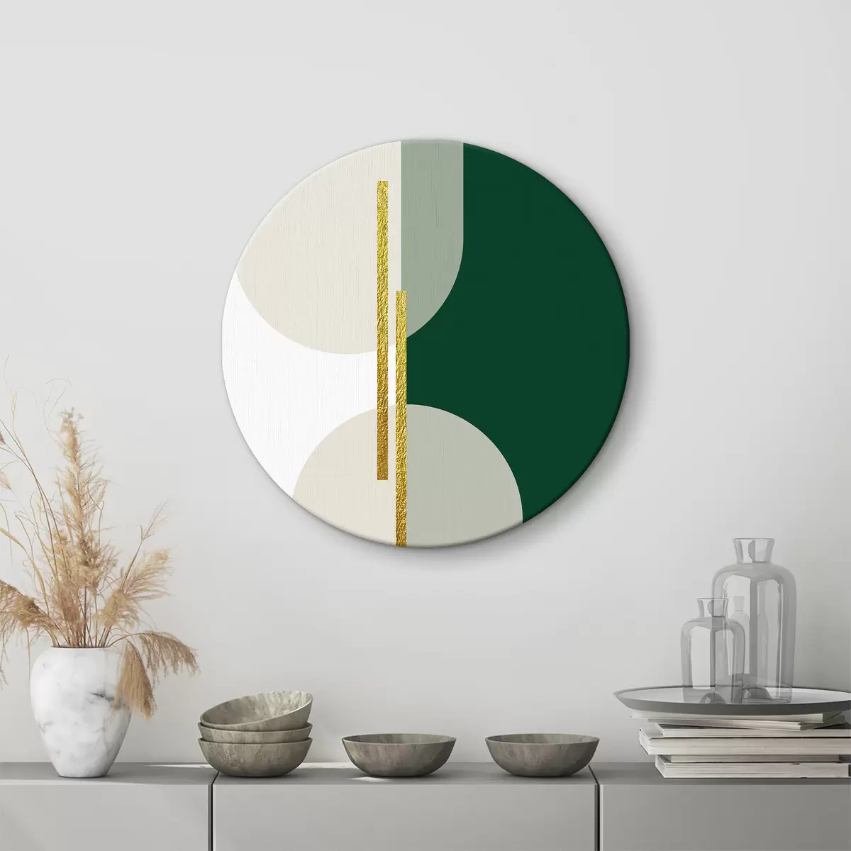 Okrągły obraz Abstrakcyjna grafika ścienna w kolorach beżu i zieleni Nr r35943
