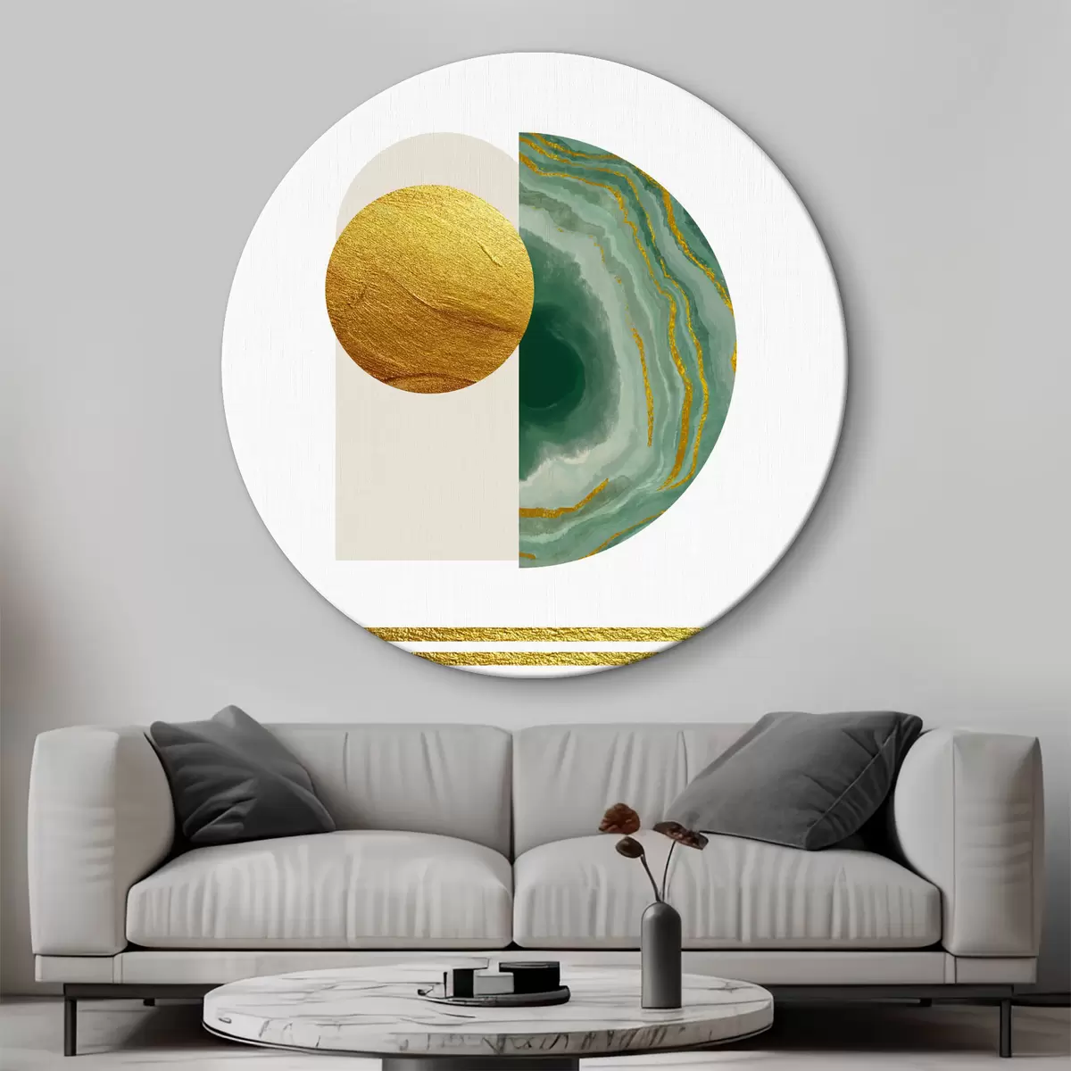 Okrągły obraz Abstrakcyjne kształty z zielonymi akcentami Nr r35986