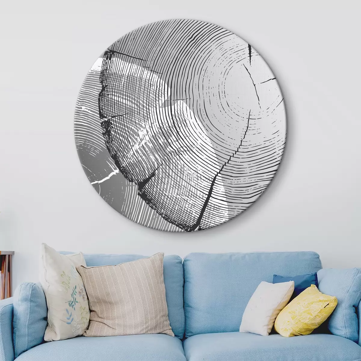 Okrągły obraz Czarno-białe okręgi wycięte z drewna Nr r35994