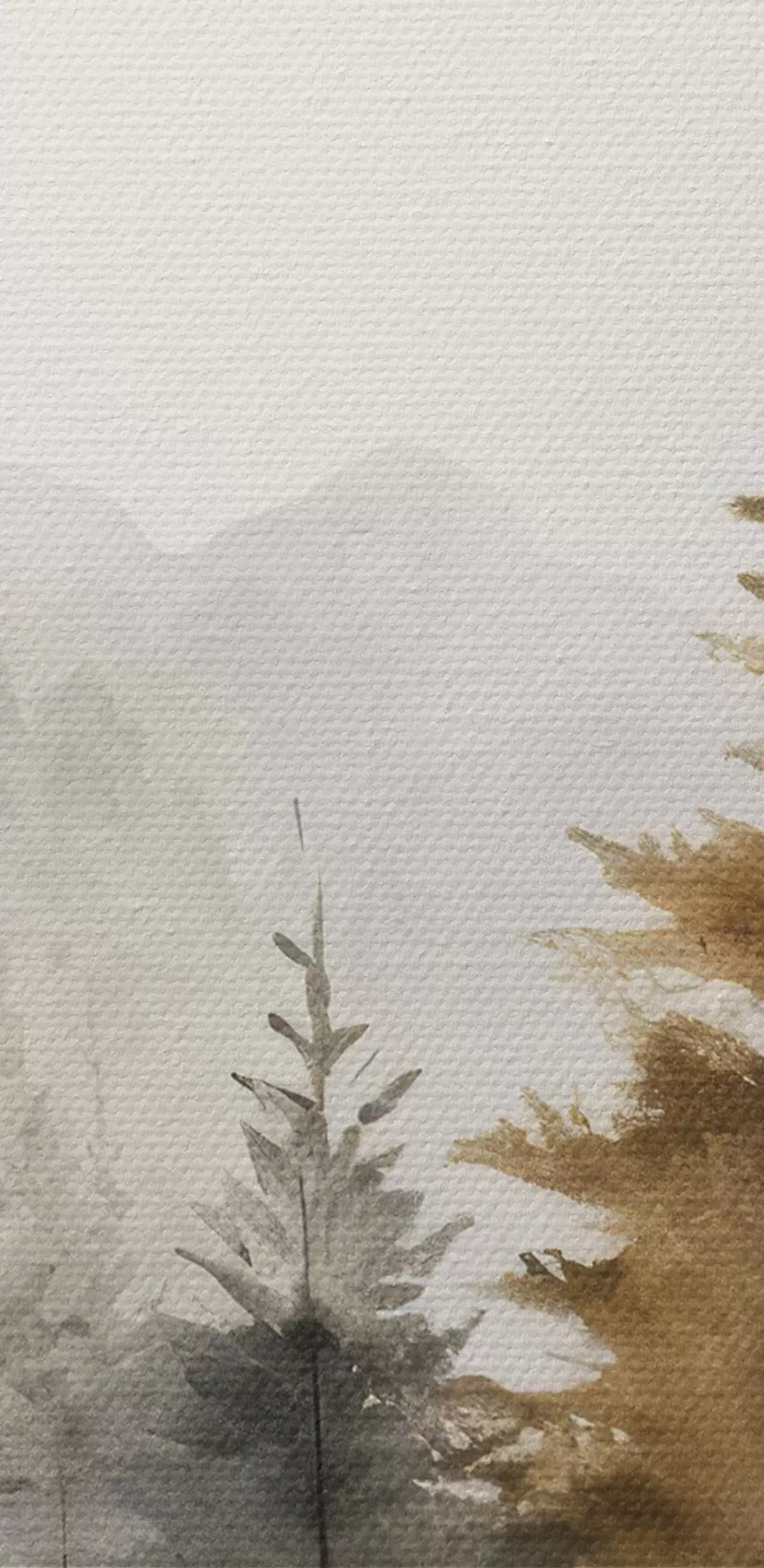 Okrągły obraz Akwarela jodły na tle gór Nr r36010