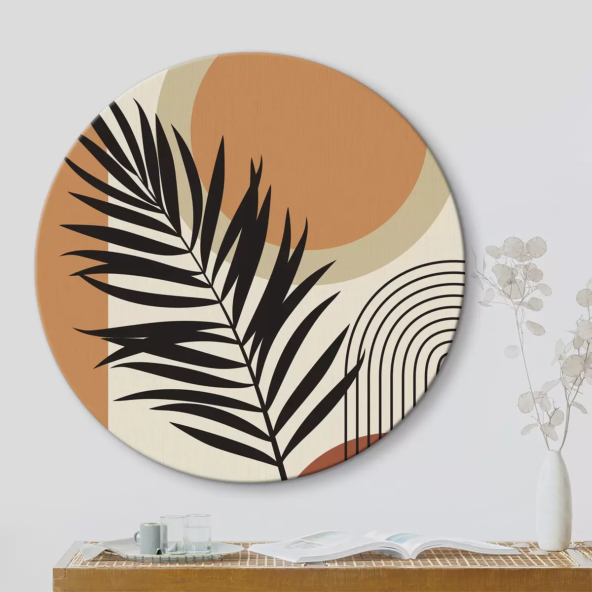 Okrągły obraz Liść palmy na geometrycznym tle Nr r36170