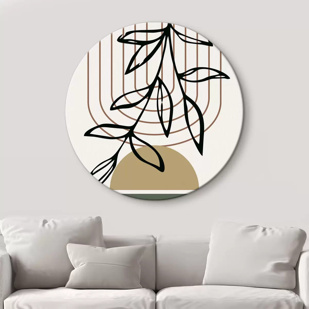 Okrągły obraz Geometryczne półkola z wiszącą abstrakcyjną rośliną i spiralą Nr r36188