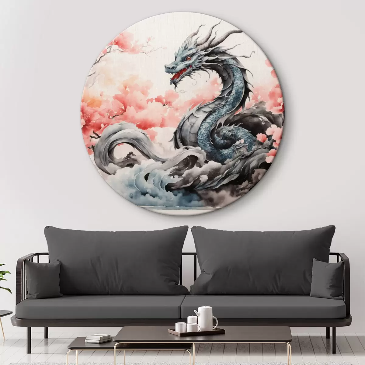 Okrągły obraz Smok z chińskiej mitologii akwarela Nr r36239