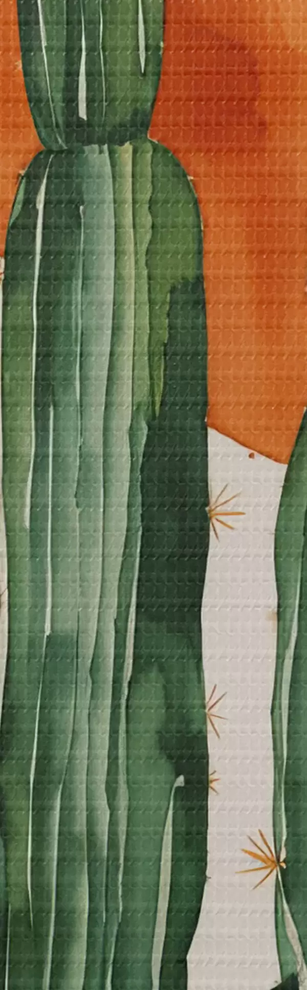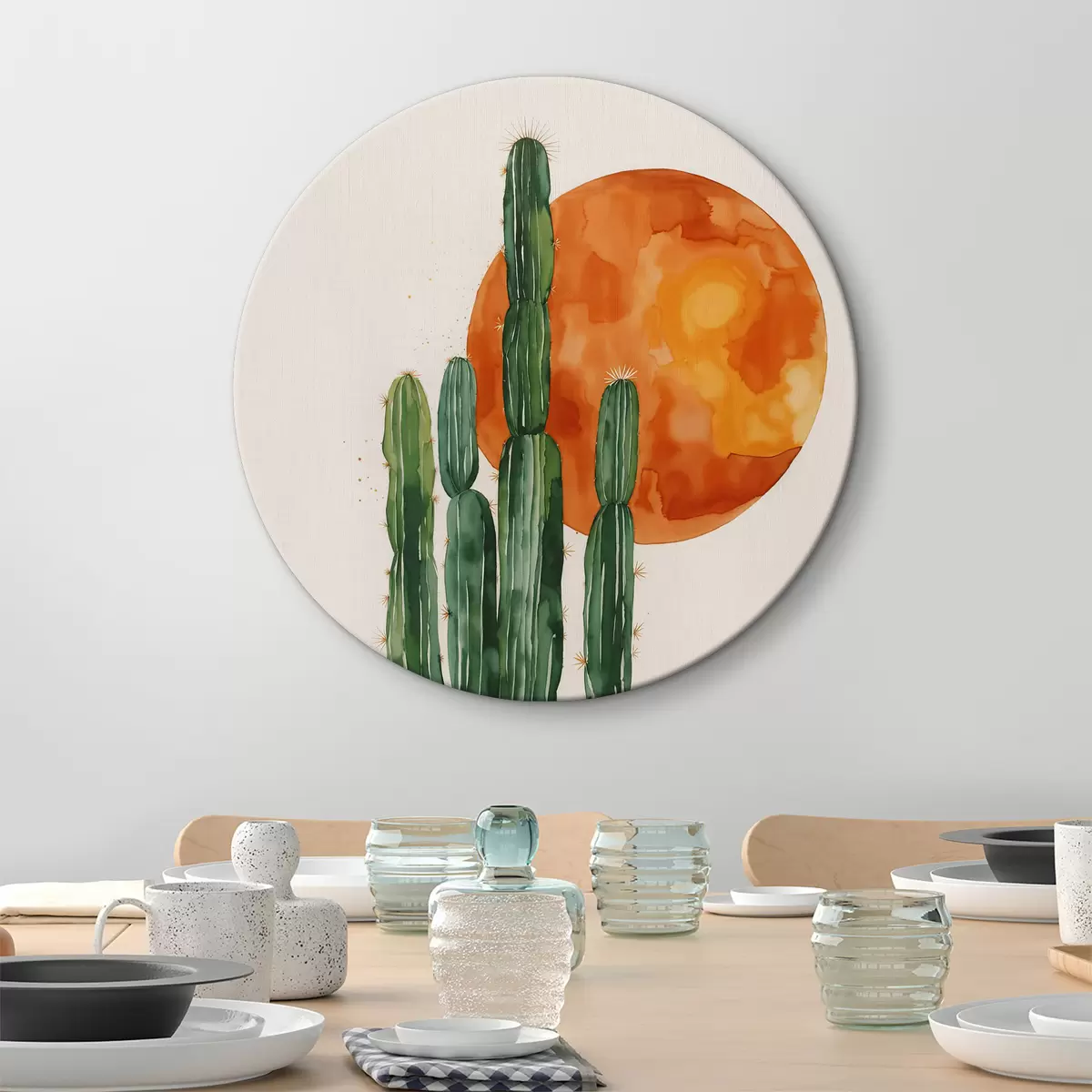 Okrągły obraz Kaktus na pustyni na tle słońca w akwareli Nr r36269