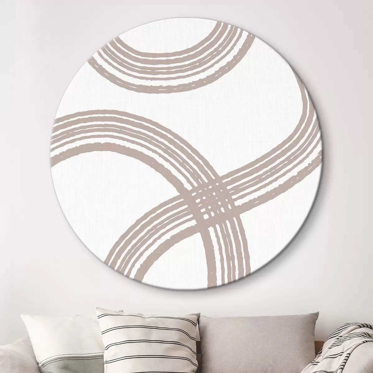 Okrągłe obrazy Abstrakcyjne beżowe linie przeplatają się z gracją r36410