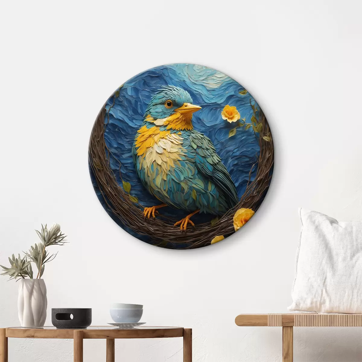 Okrągły obraz Tętniące życiem gniazdo w spokojnym wieńcu z kwiatów Nr r36440