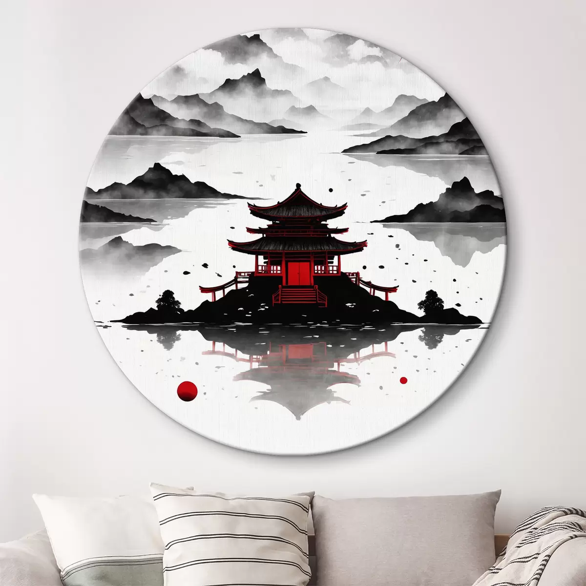 Okrągłe obrazy Czarno-biały obraz fantasy w japońskim stylu r36441
