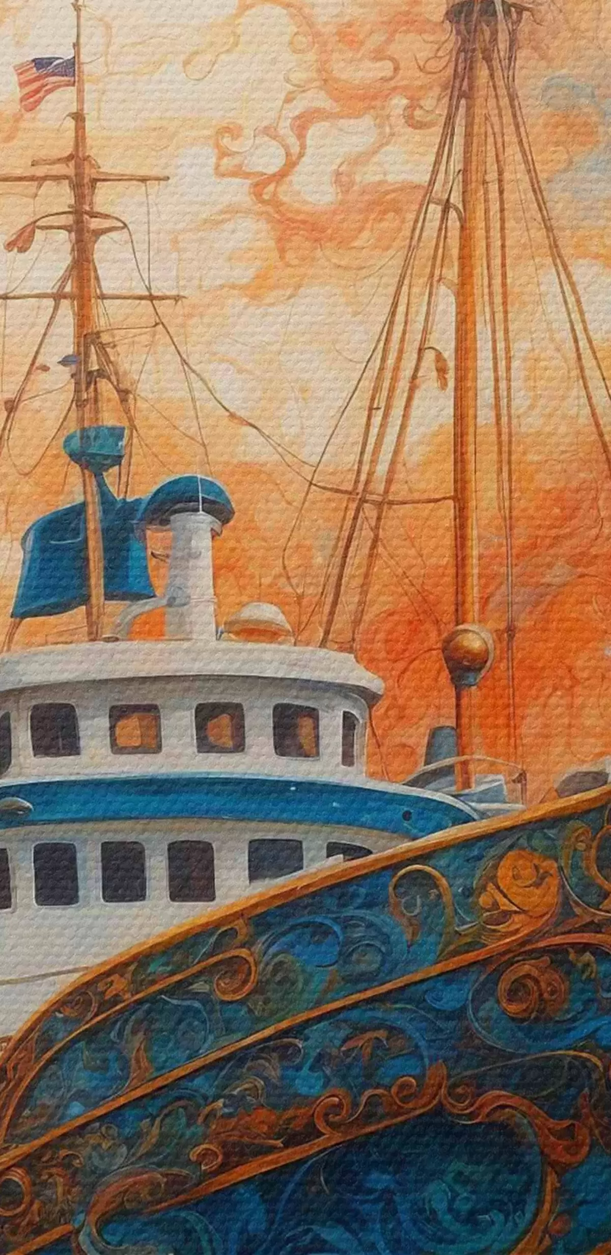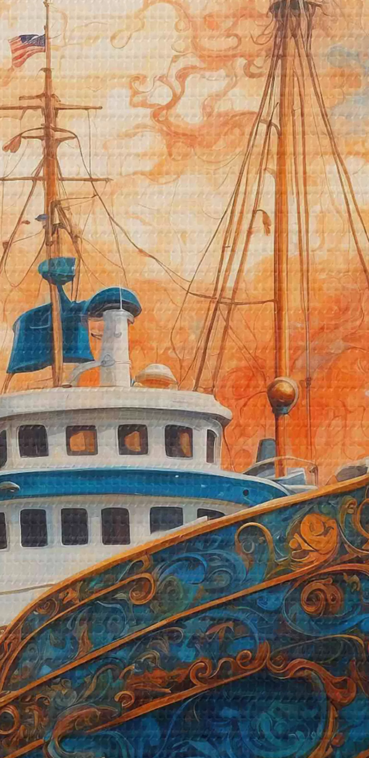 Okrągły obraz Pływający statek na tle fantastycznego nieba. Nr r36443