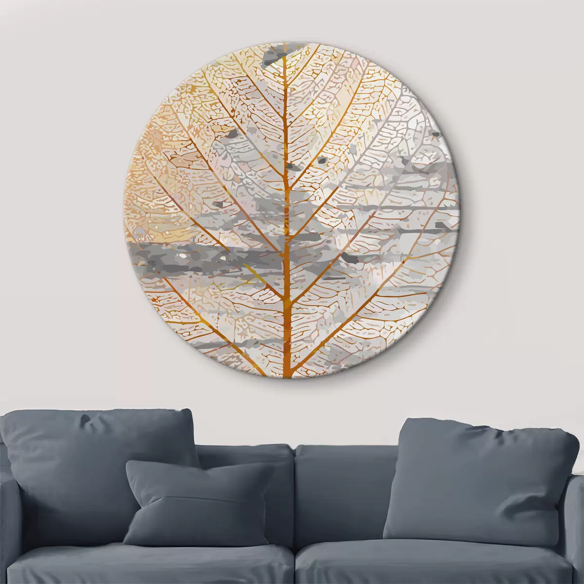 Okrągły obraz Liść na tle abstrakcji Nr r36482