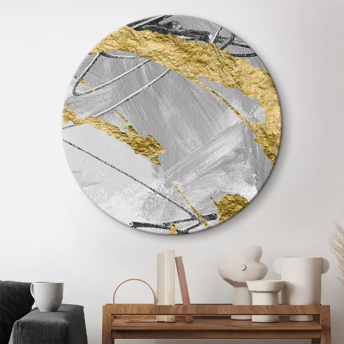 Okrągłe obrazy Złote plamy na czarno-białej abstrakcji r36485