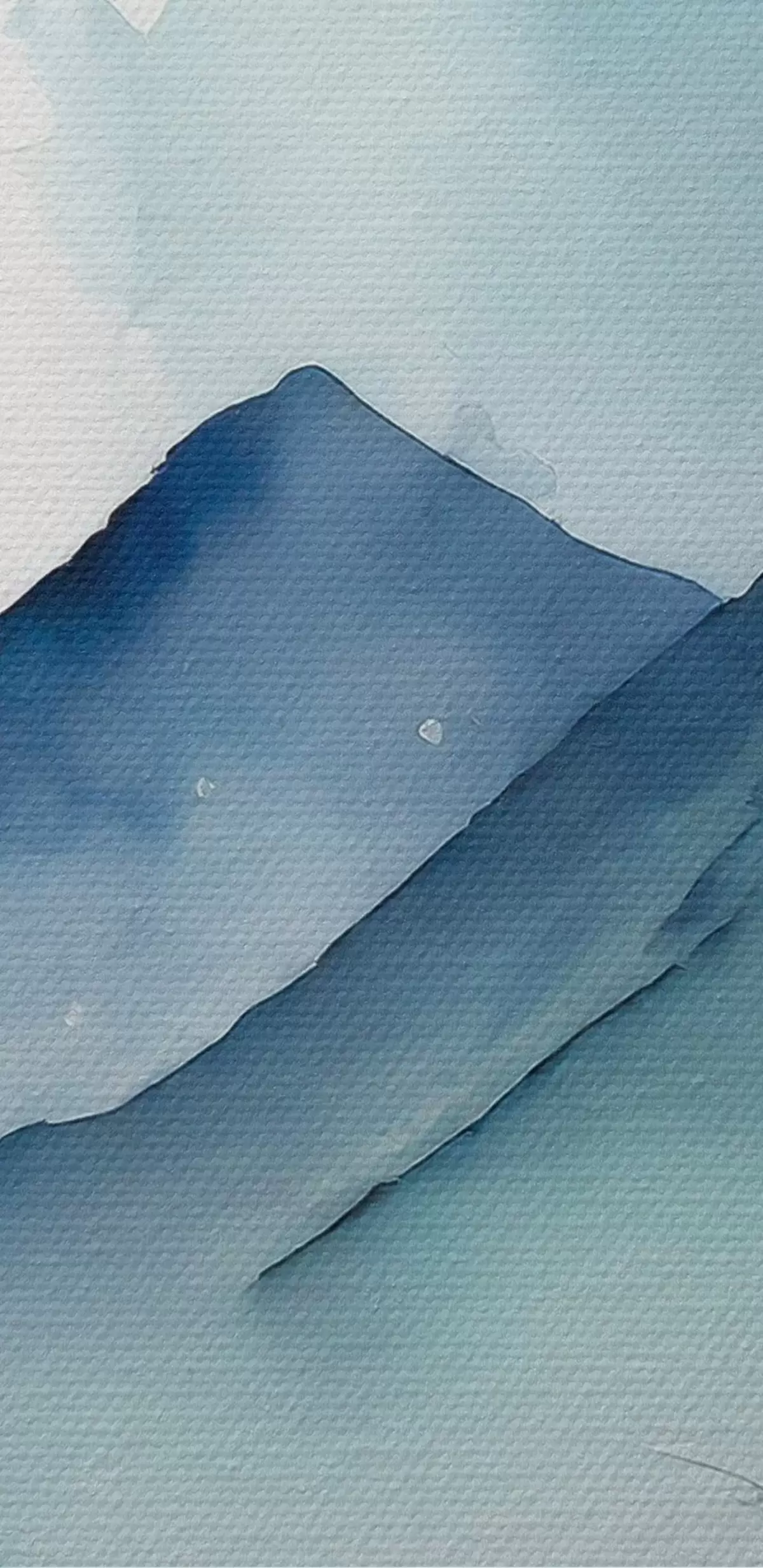 Okrągły obraz Akwarela Abstrakcyjny krajobraz górski, kolory szary i akwamaryna Nr r36495