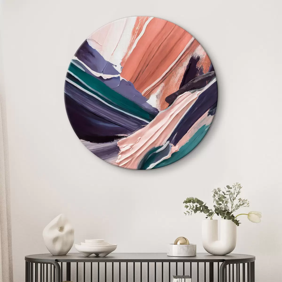 Okrągły obraz Abstrakcyjna farba olejna, pociągnięcie pędzla, tekstura farby, miękkie pomarańczowo-fioletowe kolory Nr r36498