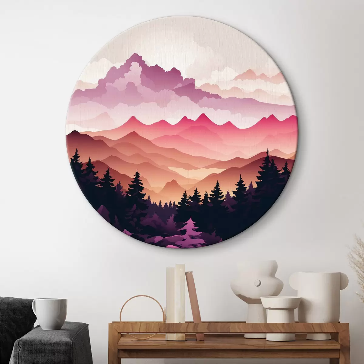 Okrągły obraz Zachód słońca nad spokojnymi górami Nr r36528