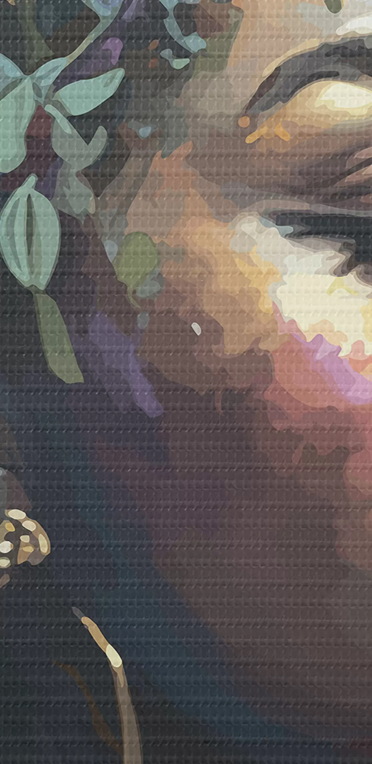 Drobny splot nici na tym płótnie przypomina powierzchnię profesjonalnych płócien artystycznych.