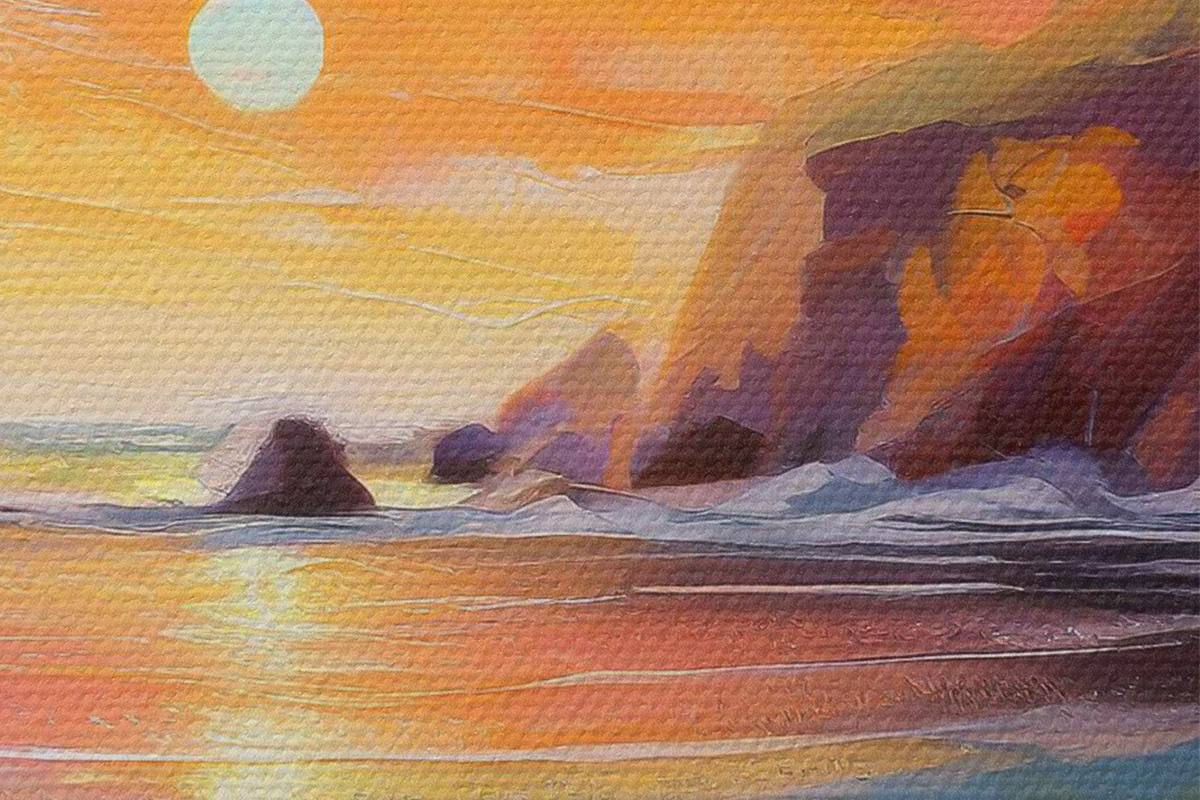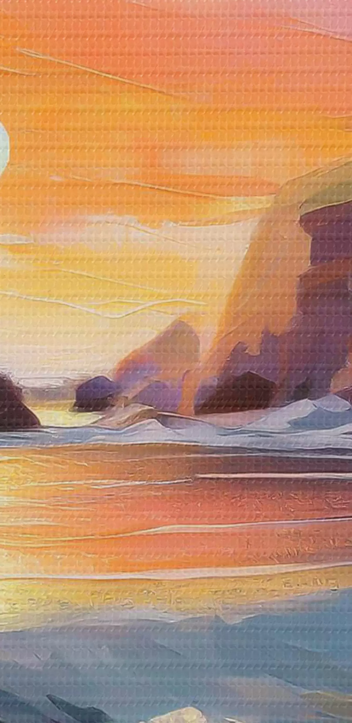 Okrągłe obrazy Wschód słońca na wybrzeżu, fale morskie, żywe pociągnięcia pędzla, akryl r36581