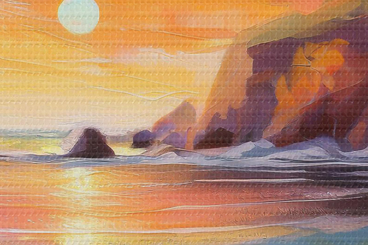 Obraz można powiesić natychmiast po jego otrzymaniu. Obraz zostanie naciągnięty na drewniany blejtram o szerokości 2 cm.