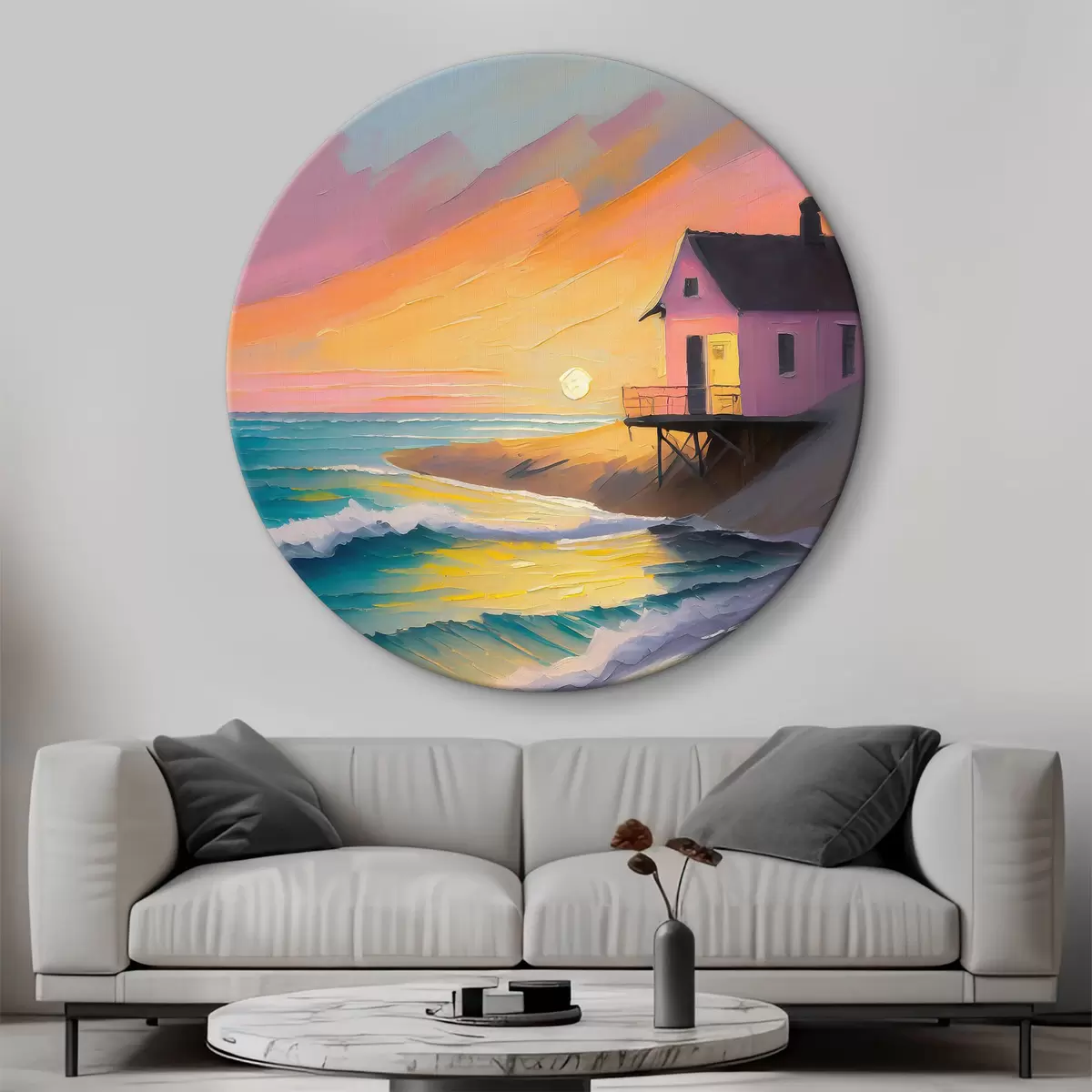 Okrągłe obrazy Kolory zachodu słońca w nadmorskiej kryjówce r36583